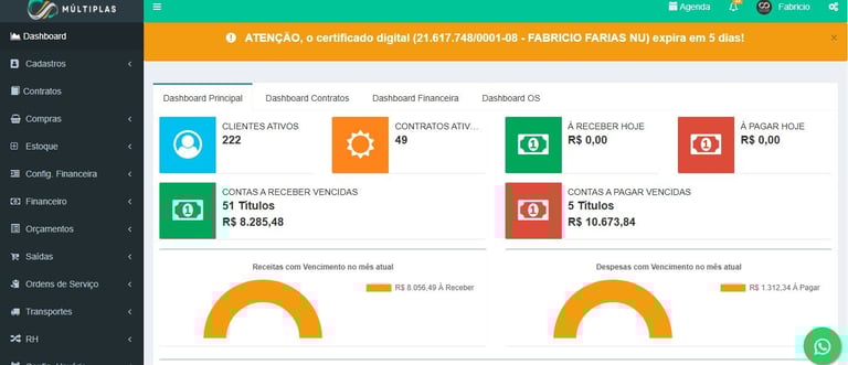 O sistema possui módulos de integração com whatsapp, financeiro de contas a pagar e receber e muito mais.